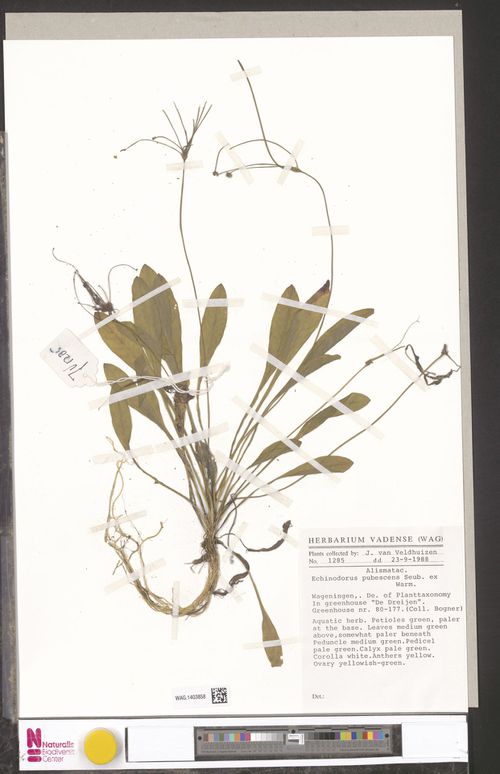Echinodorus pubescens (Mart. ex Schult.f.) Seub. ex Warm. Collected in Netherlands by Naturalis Biodiversity Center (licensed under http://creativecommons.org/publicdomain/zero/1.0/)